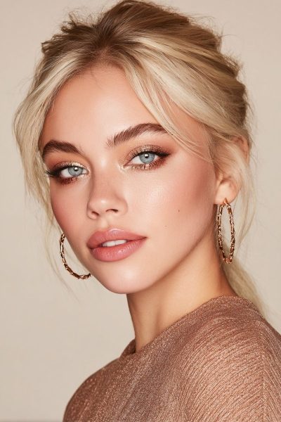 Rose gold tones bring warmth and sparkle to blue eyes.