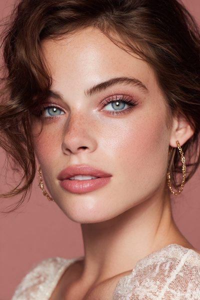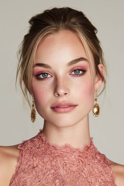 Blend a soft rose shadow over your lids, add a light dusting of blush, and finish with a matching lip tint.