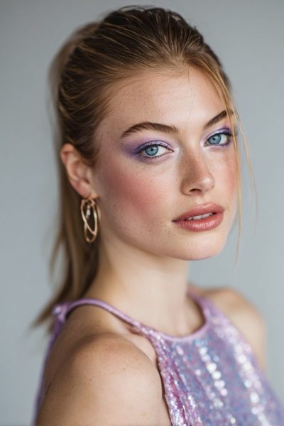 Lavender eyeshadow is subtle yet impactful, making blue eyes look dreamy.