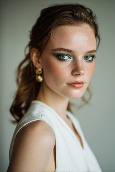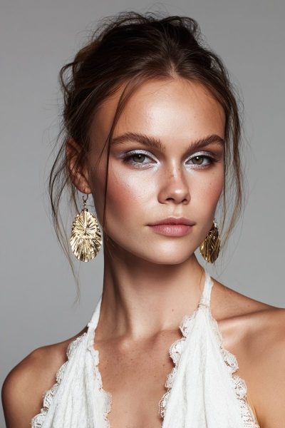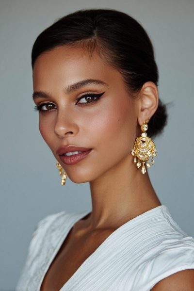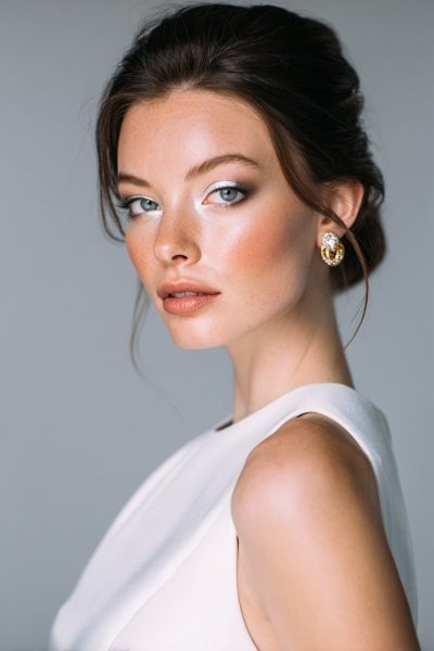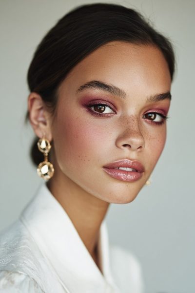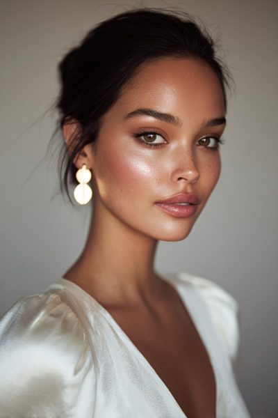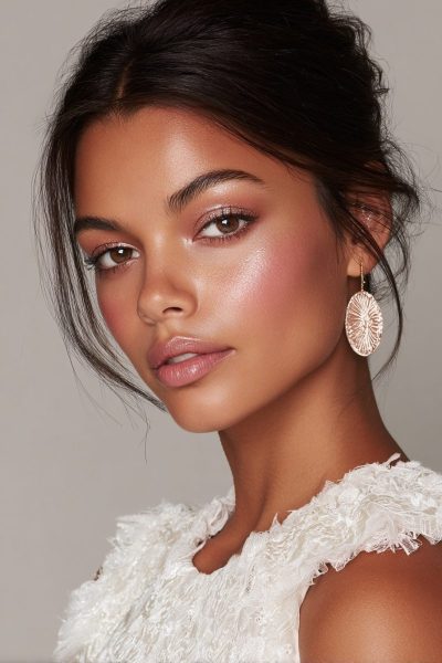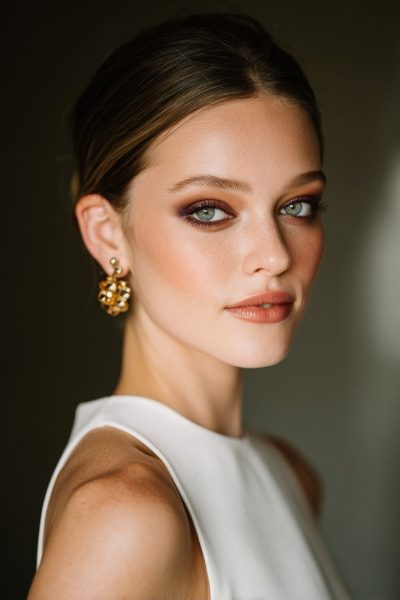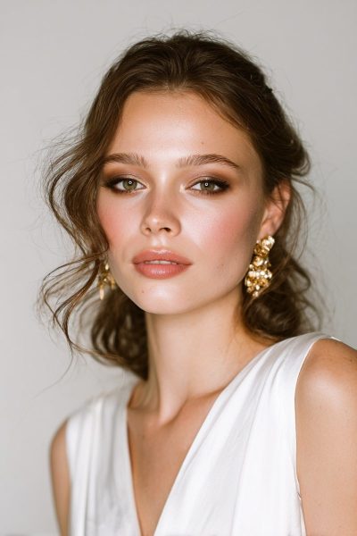 This makeup works by harmonizing earthy tones with your elegant dress details.
