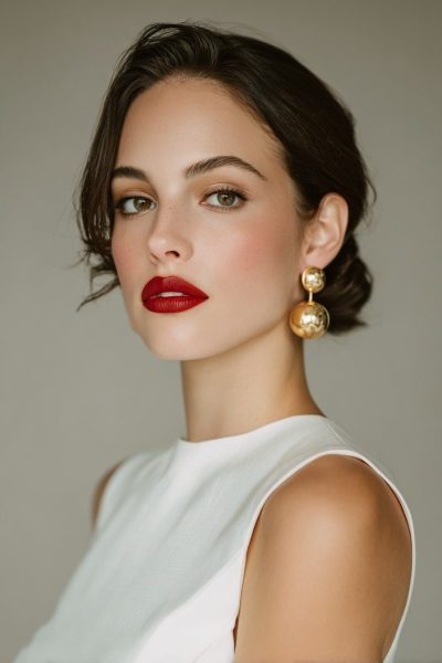 Kick things off with a dramatic red lip that instantly pops against the white dress.