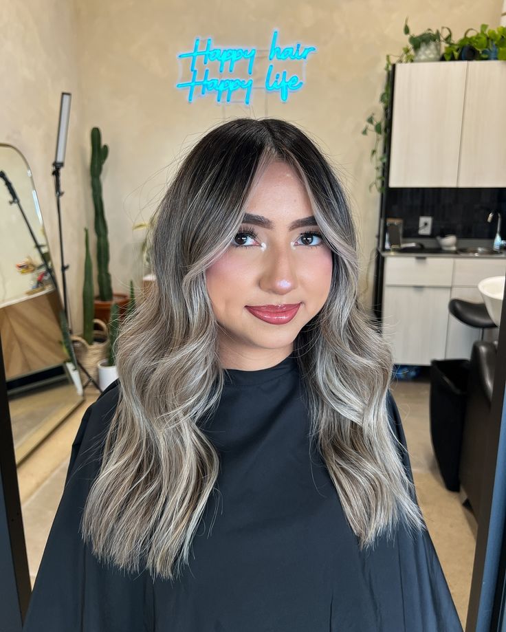 Blend a charcoal shade out with soft taupe in the crease for a seamless gradient. Urban Decay’s Naked2 has everything you need. Skip warm brown or reddish undertones — the cool gray is what makes this hair color pop.
