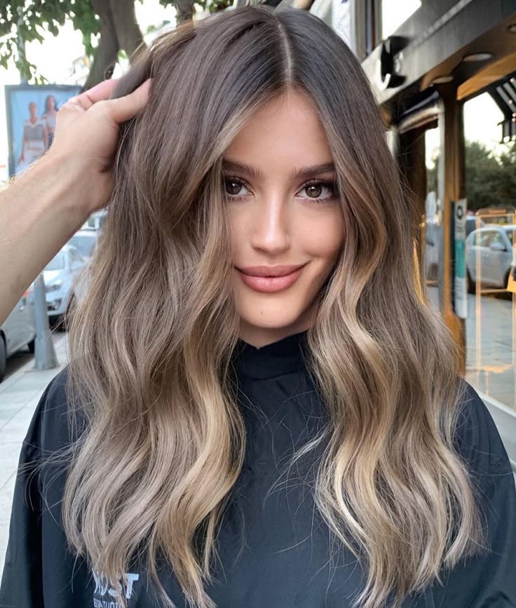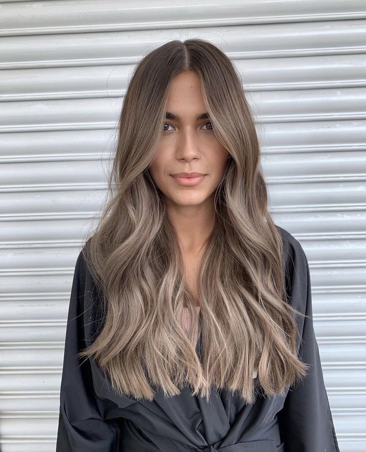 A taupe lipstick sounds intimidating, but when paired with mushroom brown hair, it looks surprisingly natural and incredibly chic. The cool, neutral tone of the lip mirrors the ashy undertones in the hair for a cohesive effect.