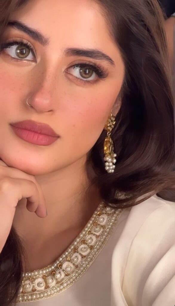 The sparkling lower lash line detail catches light every time she moves.