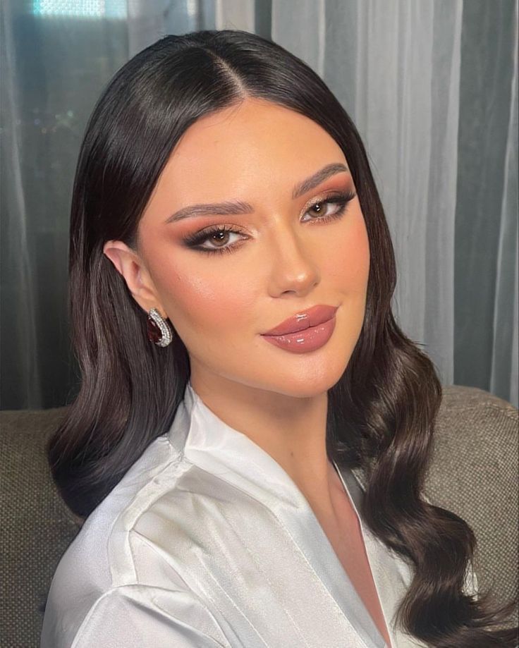 The rosy cut crease keeps eyes defined without heaviness, and the nude lip ensures nothing competes.