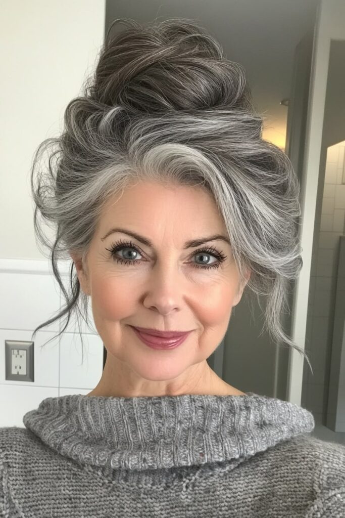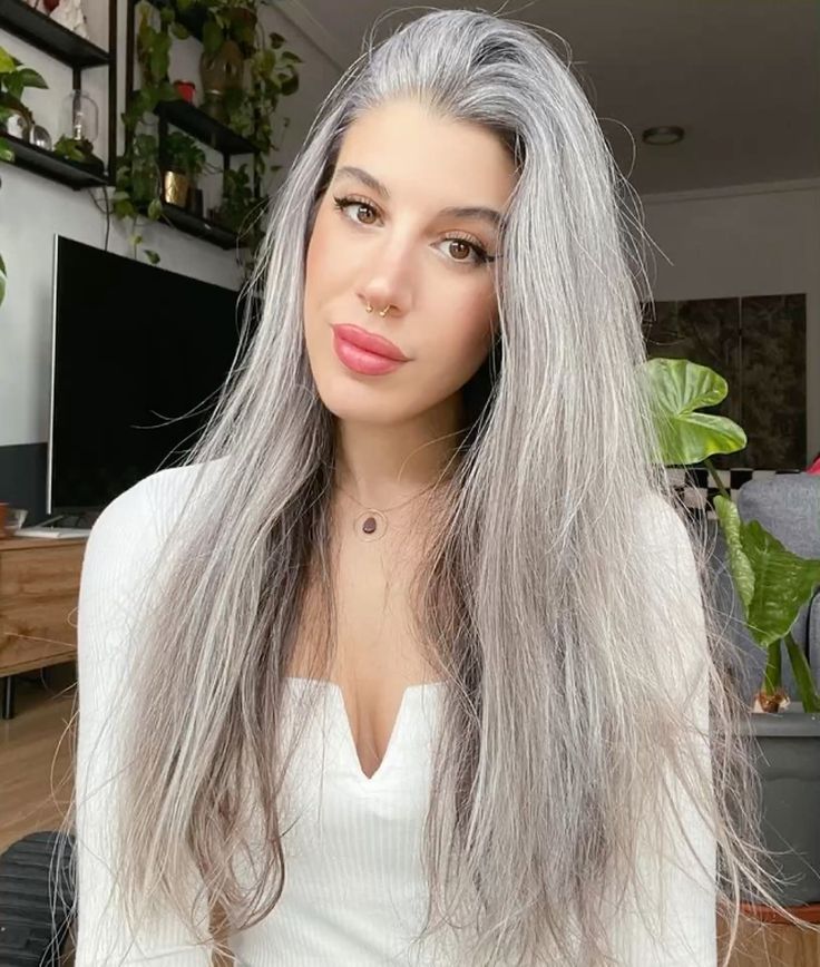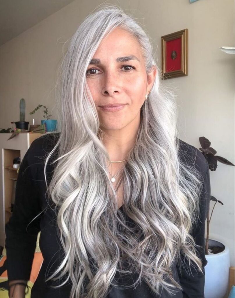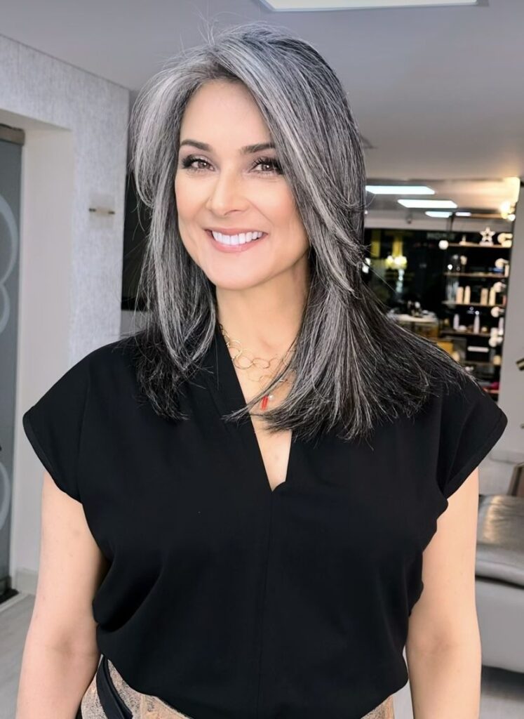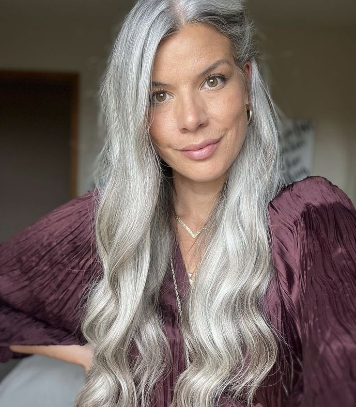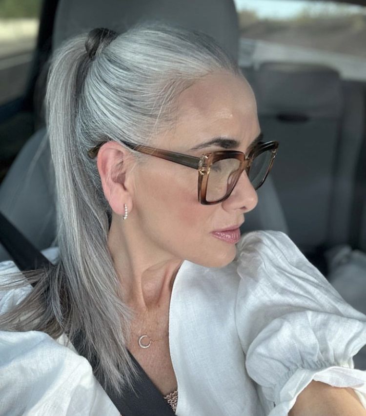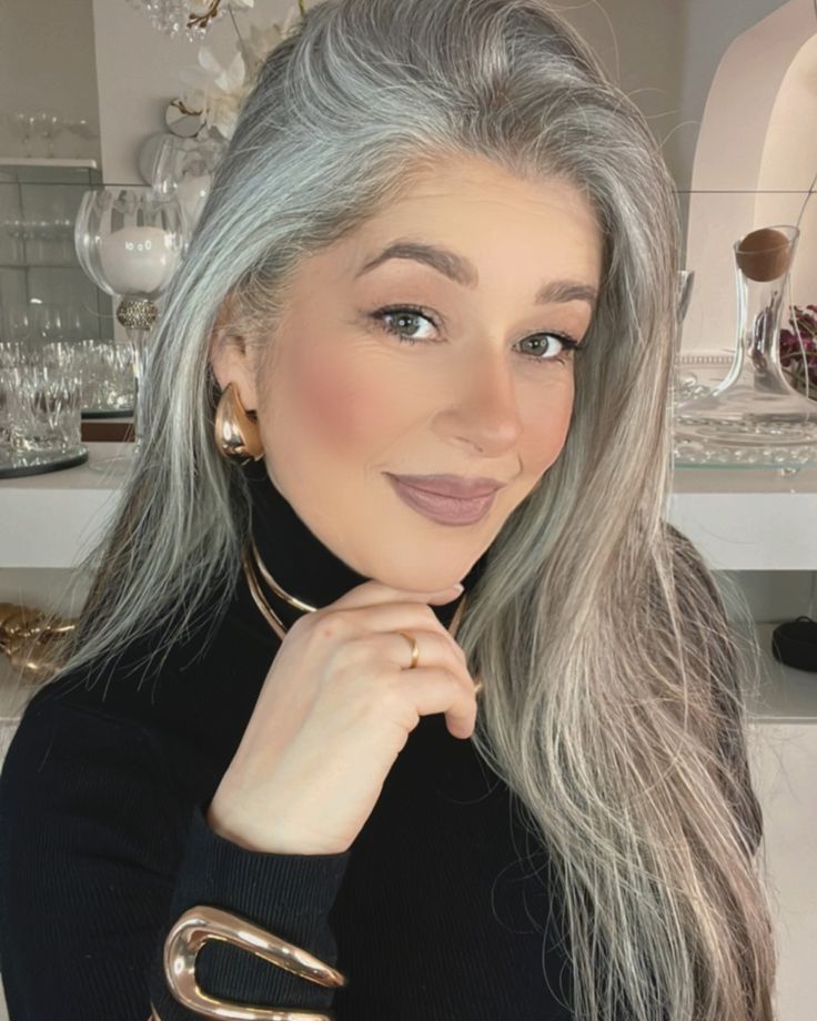 The no-makeup makeup look is one of the most flattering choices for gray hair — it lets the silver tones be the statement.