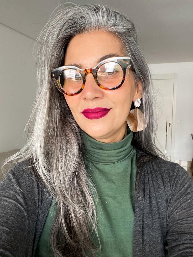 If there’s one look made for gray hair, it’s a bold red lip. According to , “when you wear a bold red lip and little to no other makeup, your skin appears brighter and clearer because the eye is naturally drawn to a single focal point: your lips.”