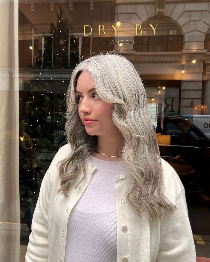 Hailey Bieber’s glazed donut aesthetic was practically made for grey hair. Try Urban Decay Naked3 palette for soft pastels, paired with Fenty Gloss Bomb.